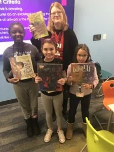 Hi! I’m Miss Eti, one of the Youth & Teen Services librarians. I hosted our third Caldecott Club session on Thursday, December 6 here at the library. After the wonderful conversations we had during our second session that blew my mind with the connections the kids made, I was eager to share some new picture books. I didn’t even realize it when I planned this session, but all of these books are about creativity, community, and individuality. During the Caldecott Club we look at amazing picture books and try to determine what makes them special and worthy of going to our Voting Party in January to win our Mock Caldecott. (If you’re new here and want to learn about our program, check out first blog post about Creating a Caldecott Community.)