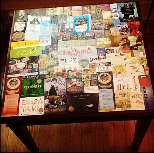 She shared a flyer about her Beckoning of Lovely film, which I used for my end table project. It seems fitting to use something from an experience making things to make an object commemorating an experience (ALA 2013) that really made me.